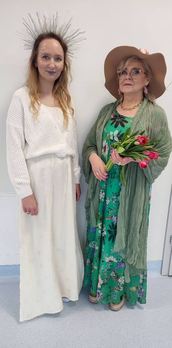 , dziękując za wspólnie spędzony czas. Wtedy właśnie na drodze pojawiła się piękna Pani Wiosna, niosąca bukiet tulipanów