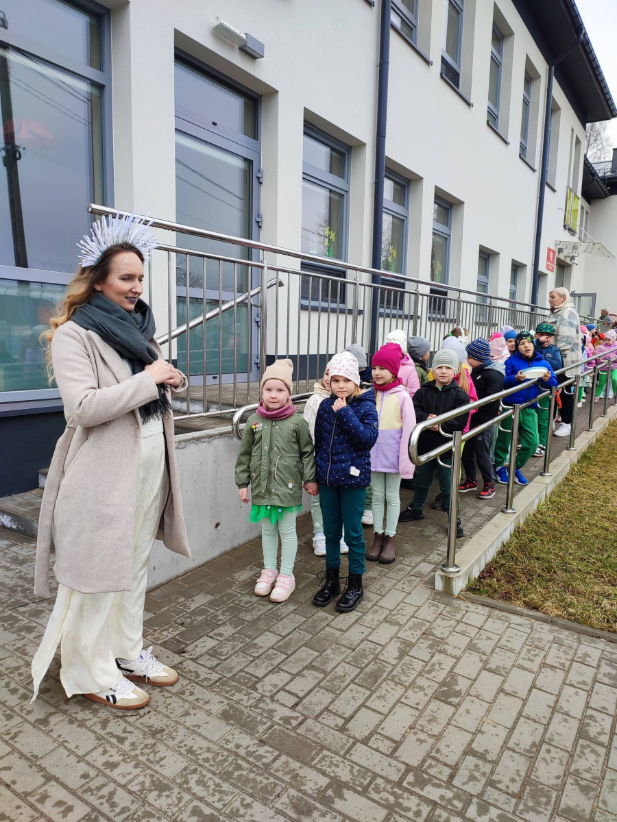 Po chwili nadszedł czas pożegnania. Pani Zima z uśmiechem pożegnała się z dziećmi i przybiła z nimi radosne piątki