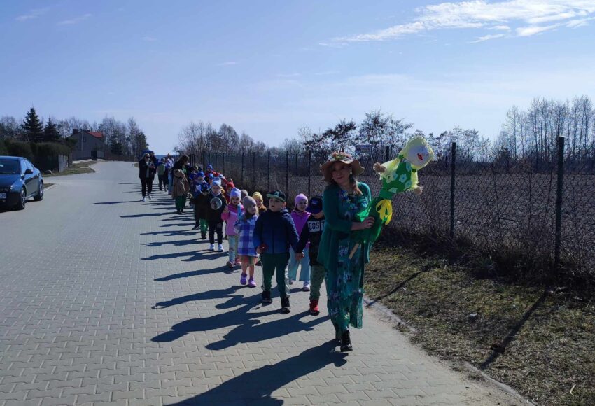 Cała społeczność przedszkolna wzięła udział w wiosennym korowodzie ulicami wsi. Do przedszkola wróciliśmy z piękną Panią Wiosną !!!
