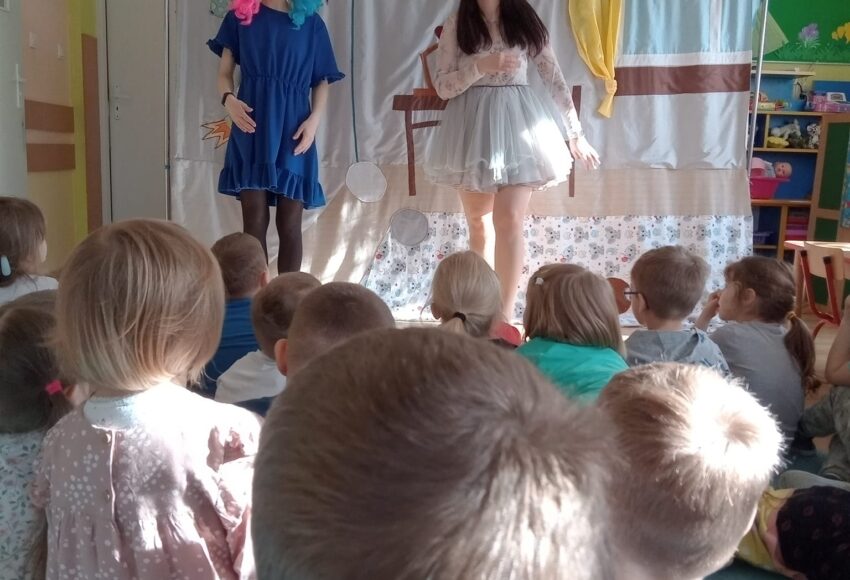 Aktorki ze Studia Artystycznego AKADA przedstawiły dzieciom sztukę o magicznych słowach. Proszę, przepraszam, dziękuję – to słowa, które potrafią odmienić świat. Dzieci mogły aktywnie brać udział w przedstawieniu, przypomniały sobie, kiedy należy używać zwrotów grzecznościowych.