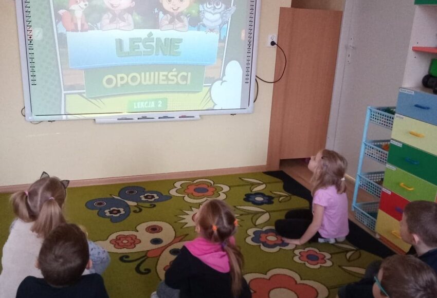 Tym razem w ramach akcji edukacyjnej ,,Dzieci uczą rodziców” przedszkolaki poszerzały swoją wiedzę na temat ,,Leśnych opowieści”.