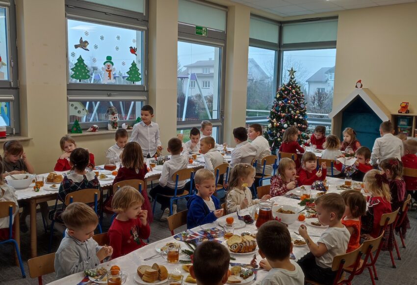 19 grudnia odbyła się wyjątkowa uroczystość – wspólna Wigilia. Takie podniosłe chwile utrwalają dzieciom znajomość tradycji i zwyczajów świątecznych oraz wzmacniają bliskie, serdeczne relacje.
