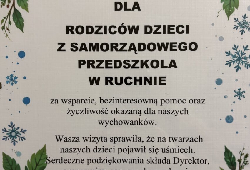 20 grudnia wszystkie przedszkolaki wybrały się na Jasełka organizowane przez Samorządową Szkołę Podstawową im. Powstańców Styczniowych w Ruchnie z udziałem grupy Muchomorki z Samorządowego Przedszkola w Ruchnie