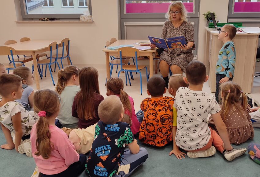 Pani Dorota zachęcała dzieci do udziału w projekcie „Mała książka-wielki człowiek”. Na zakończenie spotkania Motylki otrzymały pamiątkowe zakładki.