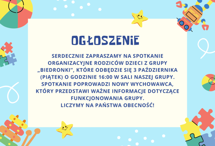 🐞 Dni adaptacyjne dla grupy „Biedronki” – ważna informacja dla rodziców Szanowni Państwo,serdecznie zapraszamy wszystkie dzieci uczęszczające od września 2025 roku do grupy „Biedronki” wraz z rodzicami na dni adaptacyjne, które odbędą się w dniach: 📅 27–29 sierpnia 2025 r.🕙 w godzinach 10:00–12:00 Dni adaptacyjne mają na celu łagodne wprowadzenie […]